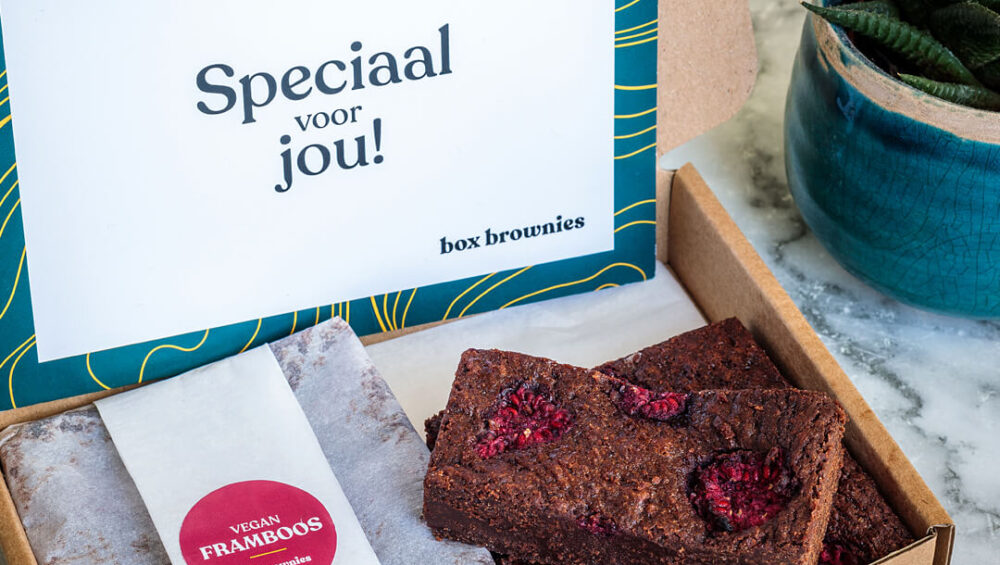 Een smakelijk brievenbus cadeau wordt nóg leuker als er een persoonlijk kaartje bij zit. Een persoonlijke boodschap mag dan ook niet ontbreken aan de box met brownies. Bij het bestellen van de box kun je gratis een persoonlijk kaartje toevoegen aan het brievenbus cadeau. Verzin de leukste felicitatie, schrijf een waardevol bedankje of misschien wel wat woorden om iemand een hart onder de riem te steken. Het kan allemaal. Je kunt zelf de persoonlijke boodschap voor op het kaartje schrijven en wij maken het voor je in orde.